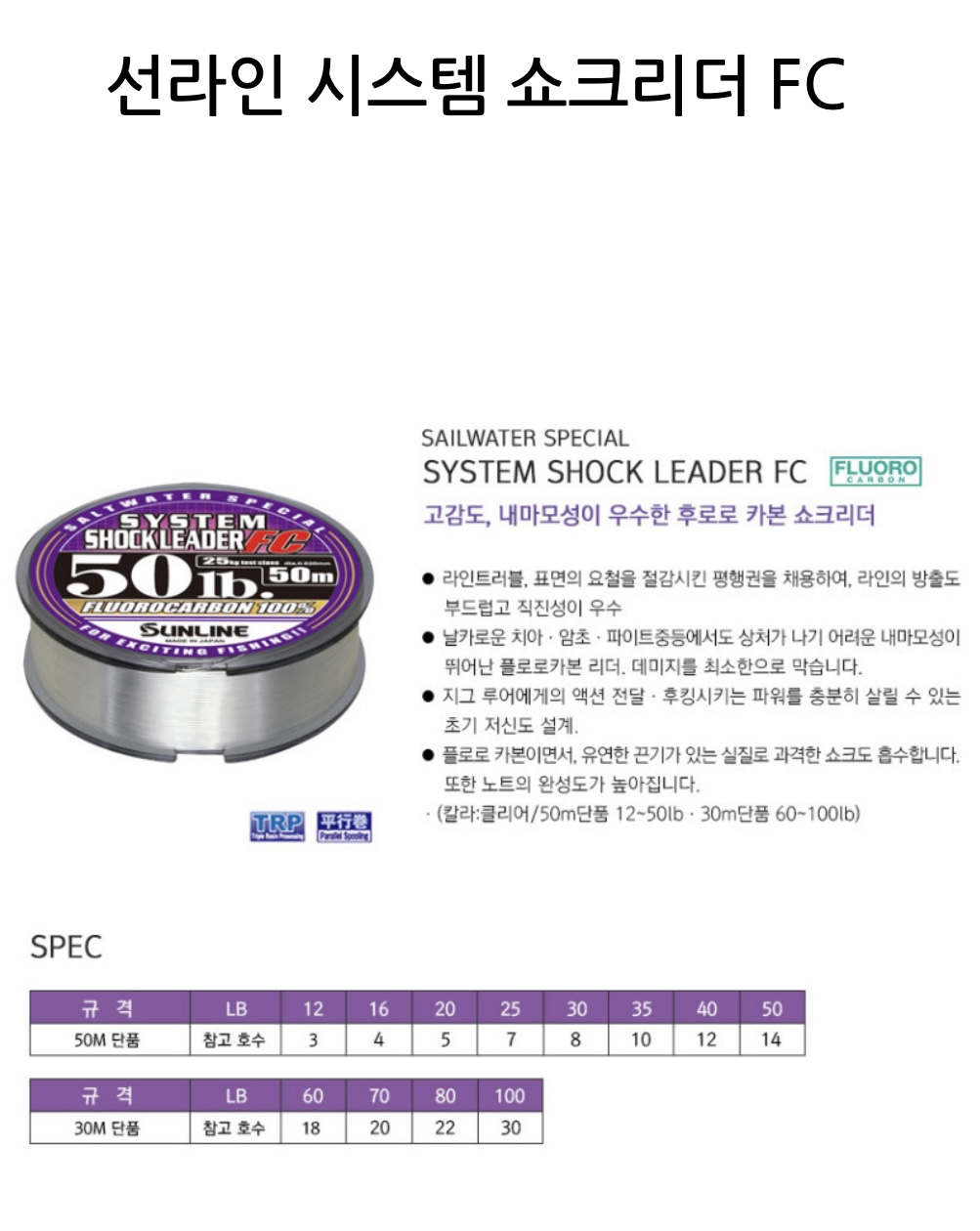 선라인 시스템 쇼크리더 후로로 카본 라인 50m 목줄
