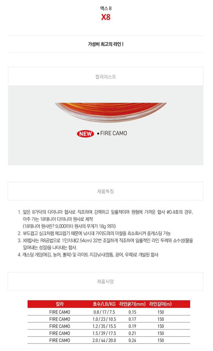 서픽스 8합사 파이어카모 캐리어 브레이드 150m, 270m