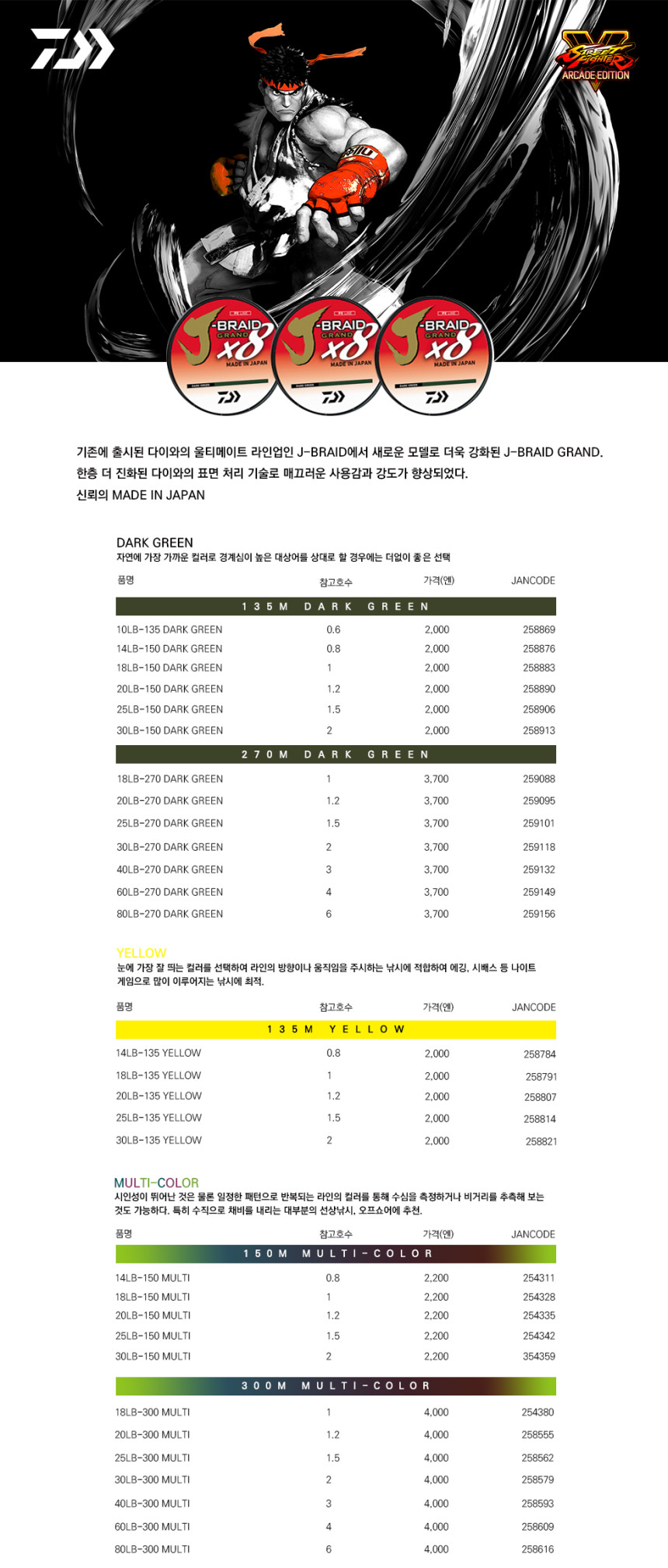 다이와 제이 브래드 8합사 150m 18LB 1호