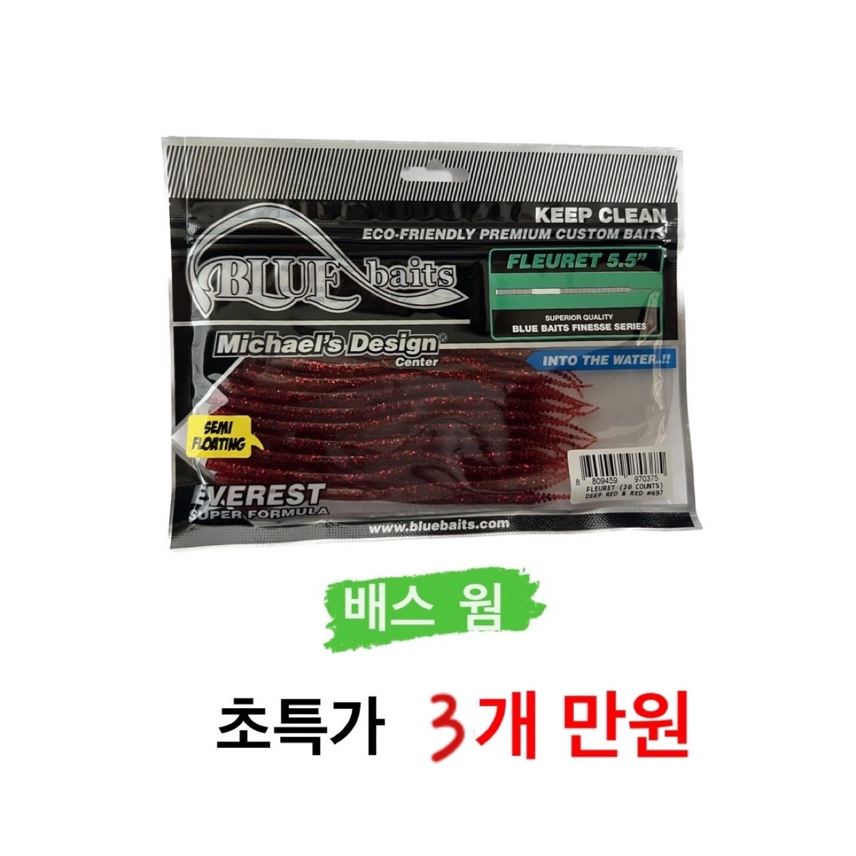 [블루베이트] 배스 웜 *3개 만원*