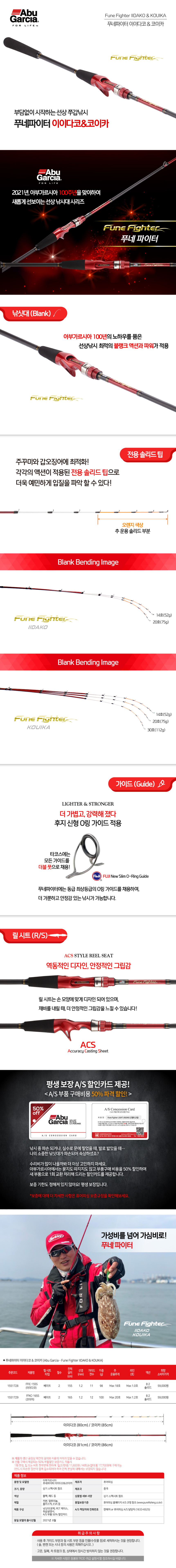 아부가르시아 푸네파이터 이이다코 쭈갑대 155 165