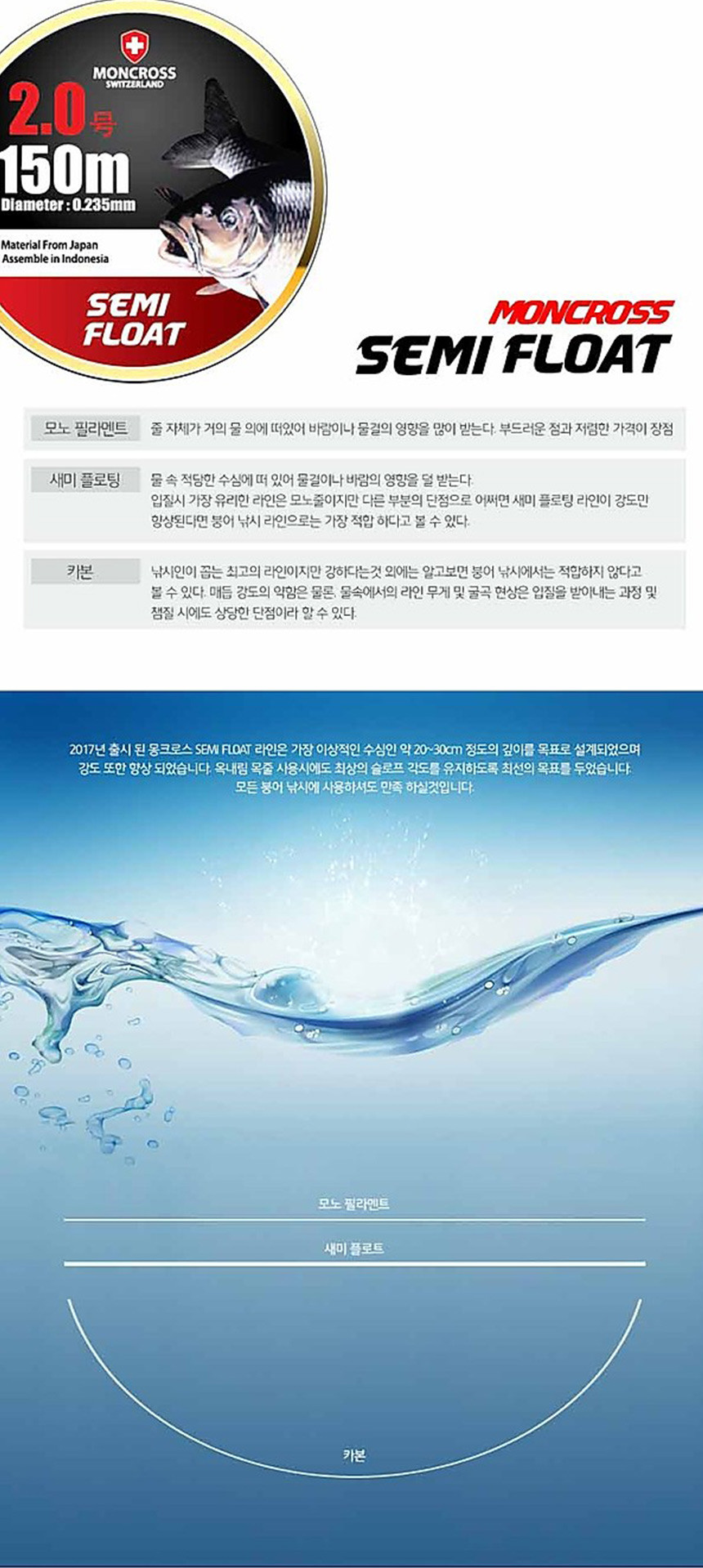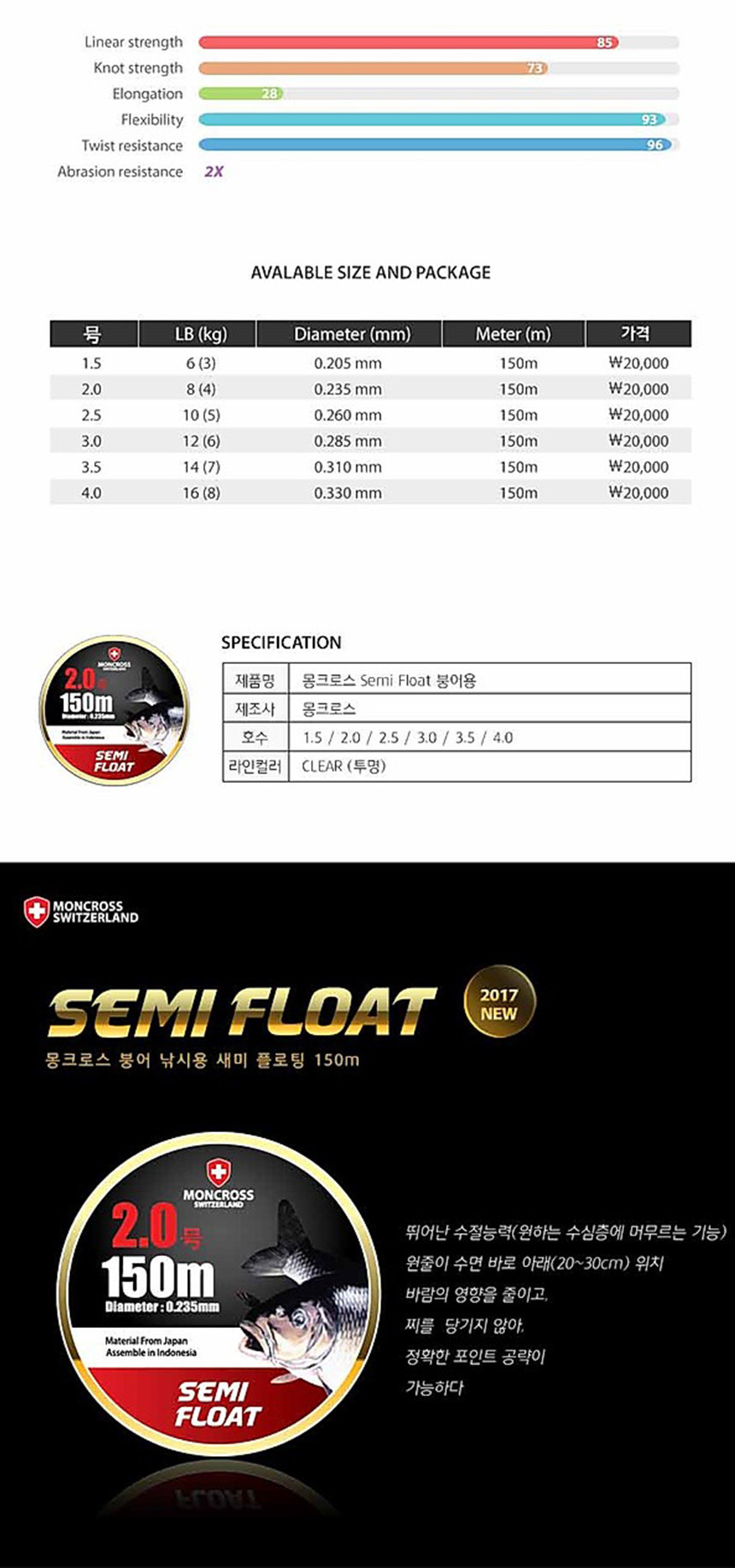 몽크로스 세프플로트 150m 민물 원줄 붕어낚시줄