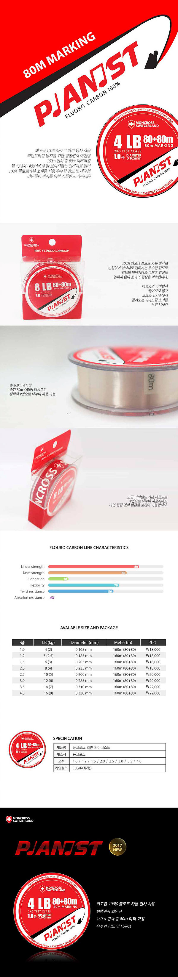 몽크로스 피아니스트 카본라인 80+80m 원줄