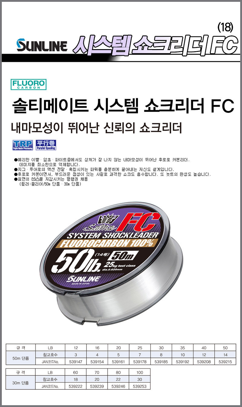 선라인 시스템 쇼크리더 30m 카본 바다목줄