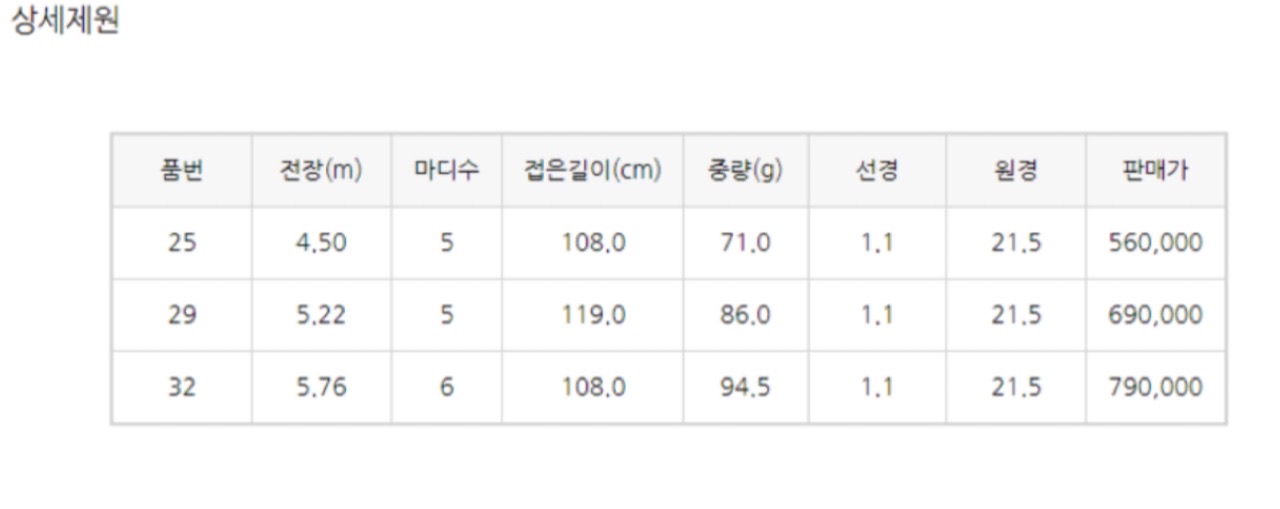 천류 엑스칼리버 무영검 초경량 민물 내림낚시대