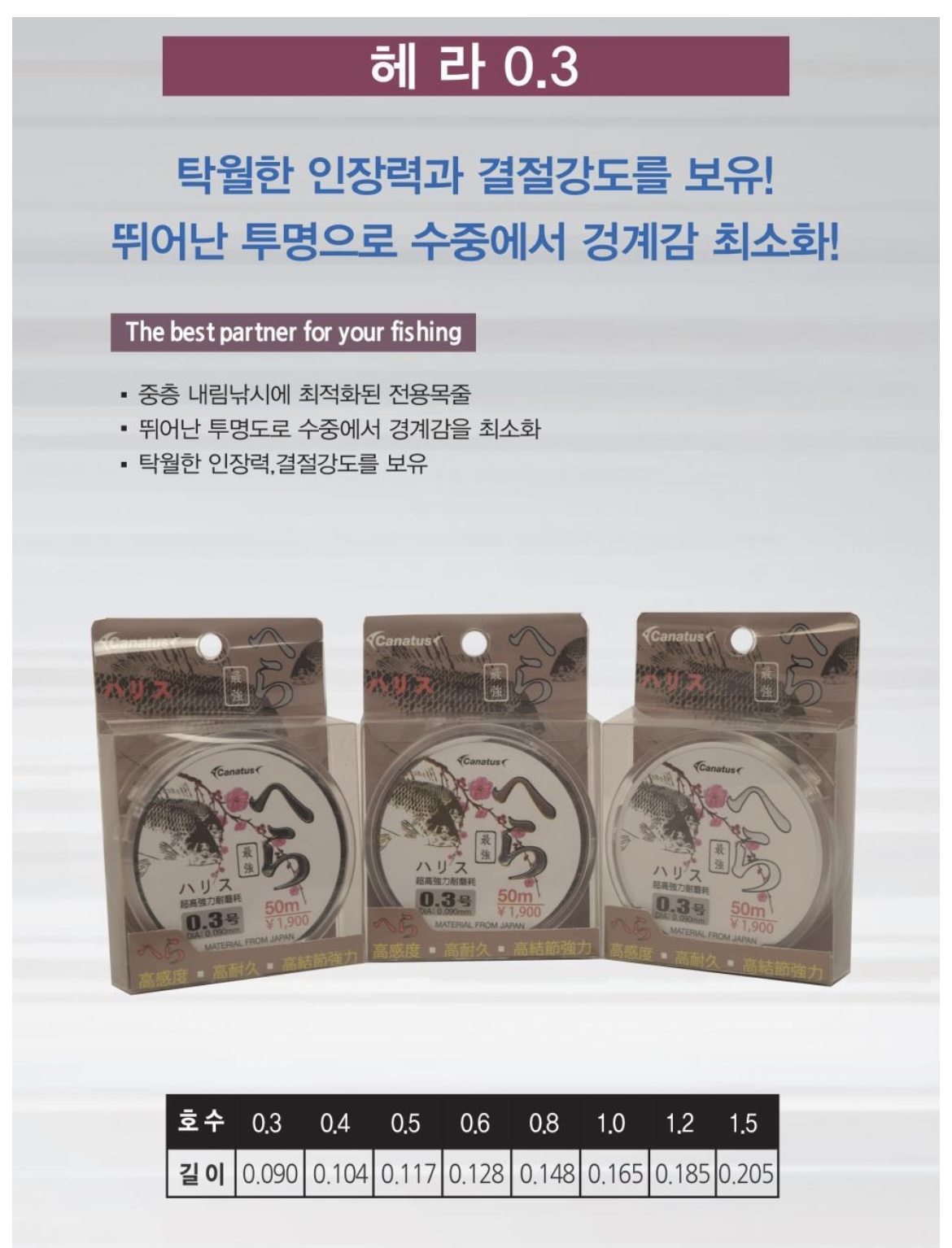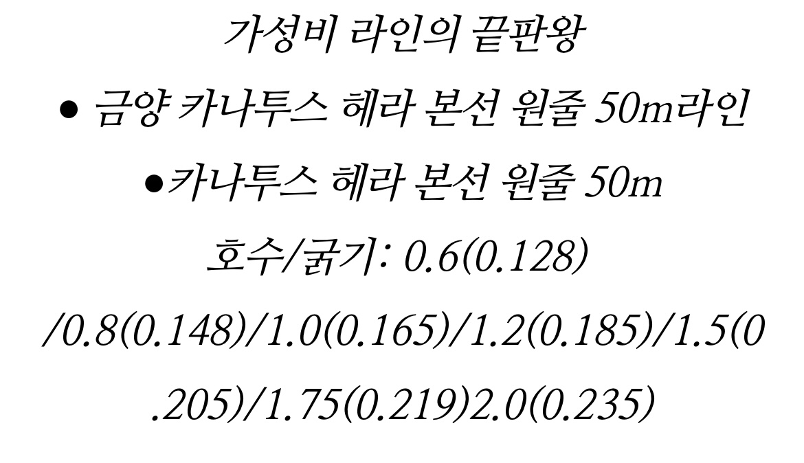 금양 카나투스 헤라 도사 원줄 / 목줄 50m 민물낚시줄