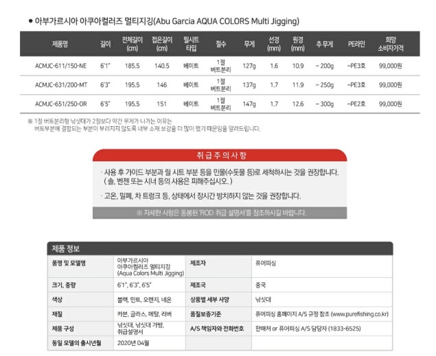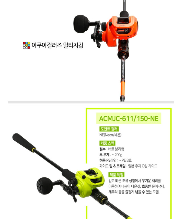 아부가르시아 아쿠아 컬러즈 멀티지깅 611/150NE 대광어 우럭 대수 선상루어대