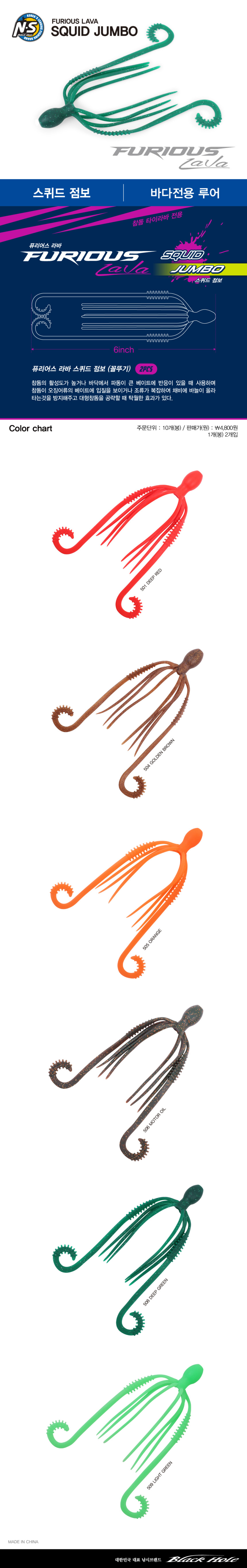NS 퓨리어스 라바 스퀴드 점보 꼴뚜기웜 참돔 대구웜 타이라바 2개입