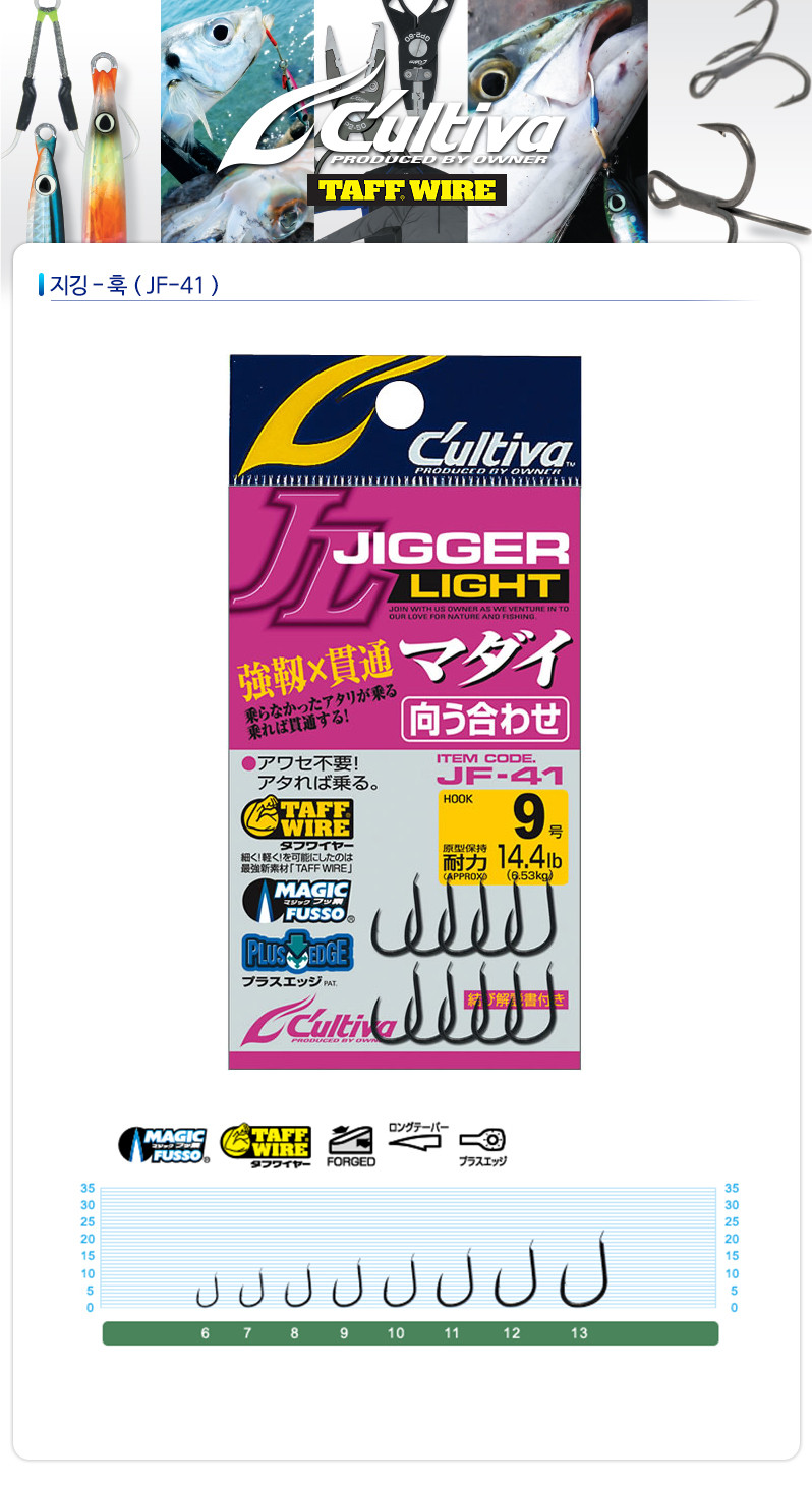 오너 컬티바 지거라이트 타이라바훅 지깅바늘