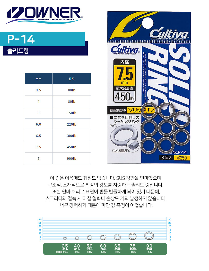 오너 컬티바 솔리드 링 P-14 루어 지깅링