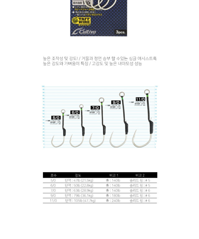 오너 컬티바 지거 미디움 블루체이서 지깅싱글훅 어시스트훅