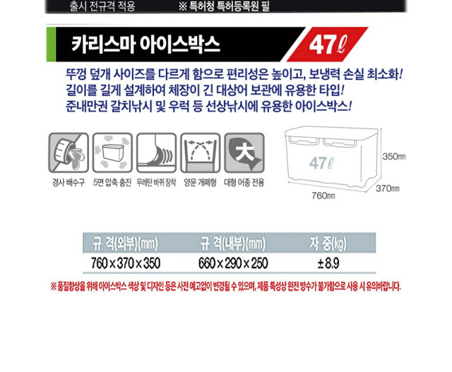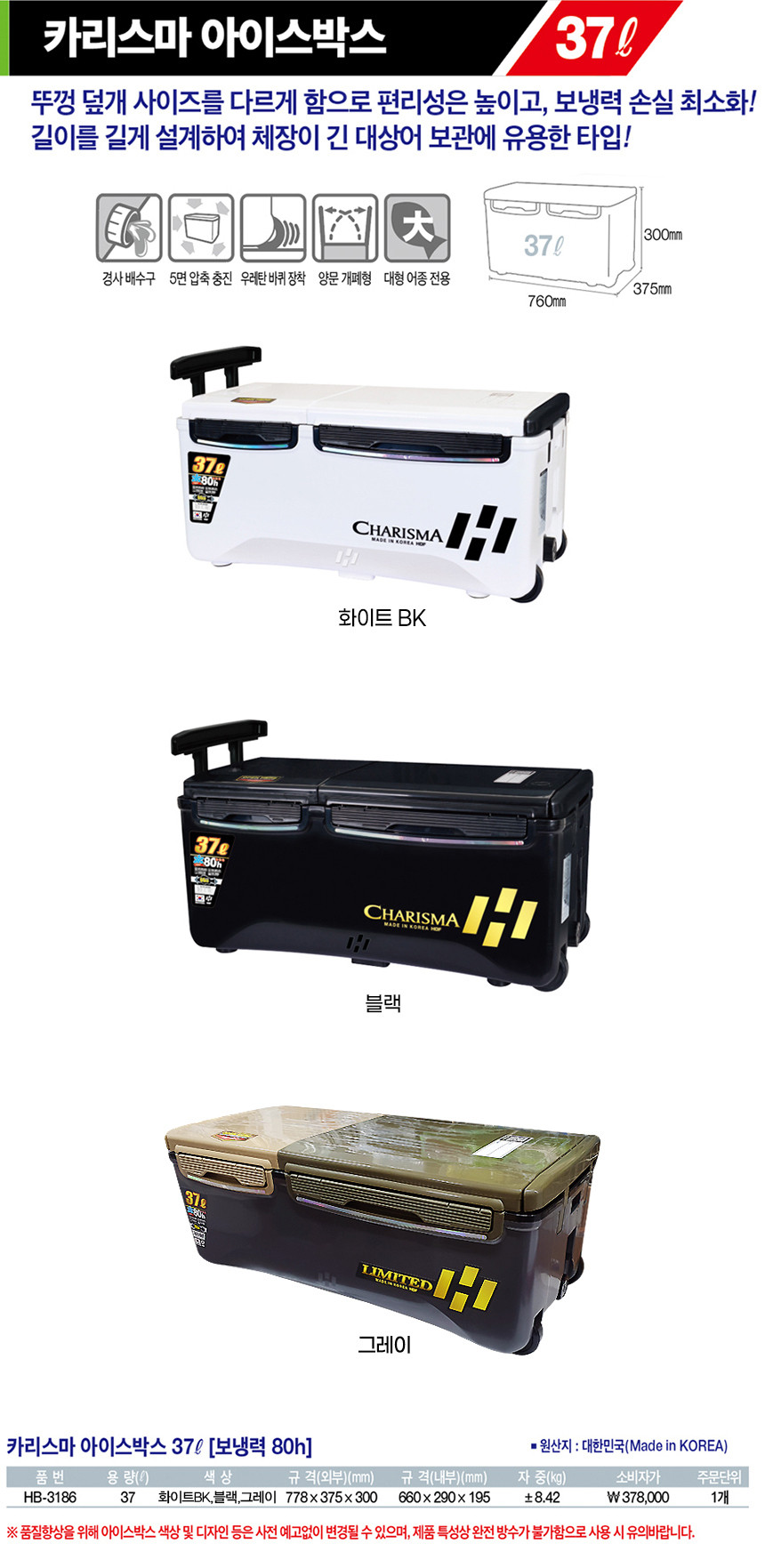 해동 카리스마 23년형 캐리 대장쿨러 리미티드 그레이 37L 47L 55L 아이스박스