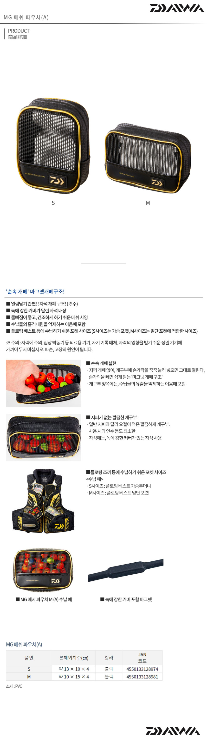 다이와 MG 메쉬 파우치 구멍찌 케이스 M