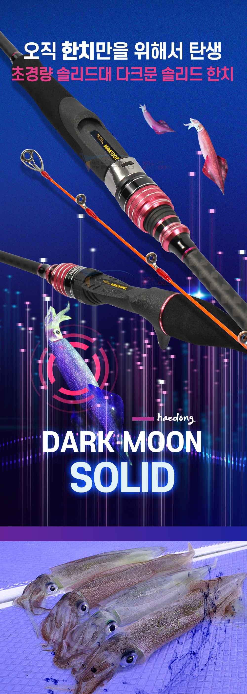 해동 다크문 솔리드 한치 초경량 이카메탈 오모리 낚시대