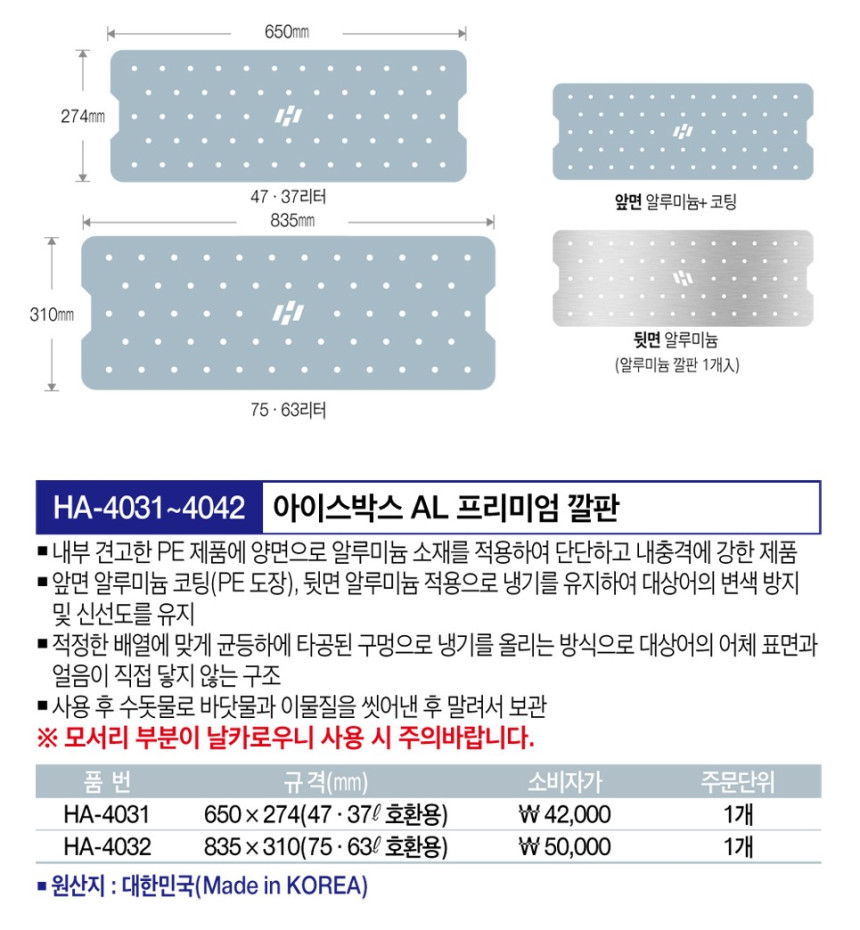 해동 아이스박스 알루미늄 AL 프리미엄 깔판