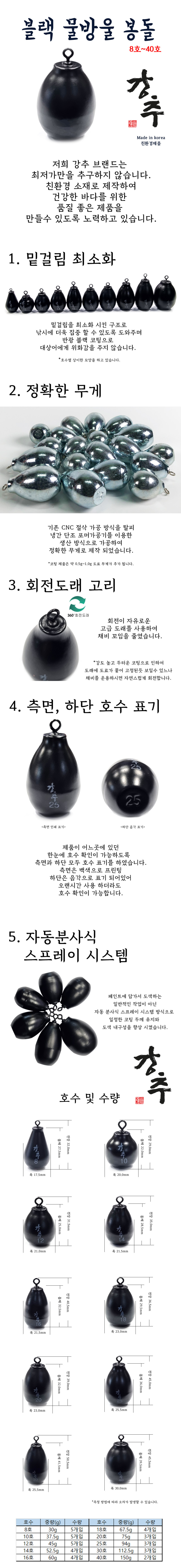 친환경 물방울추 강추 블랙 봉돌 8호~40호
