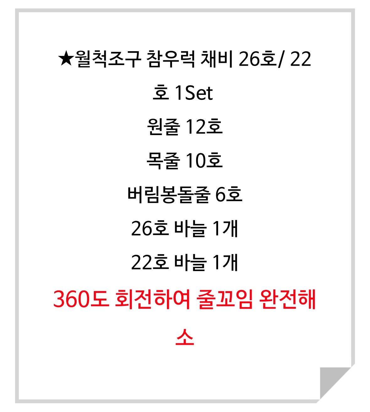 월척조구 무매듭 참우럭채비 22호 26호 세트