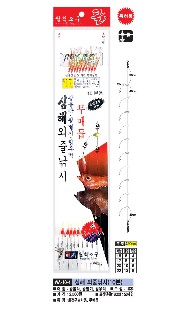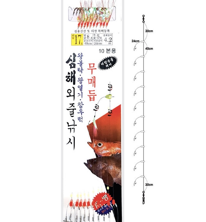 월척조구 심해외줄낚시 무매듭 참볼락 우럭 왕열기 카드채비 바늘 20호