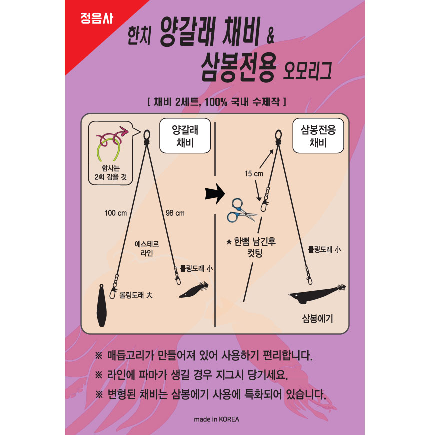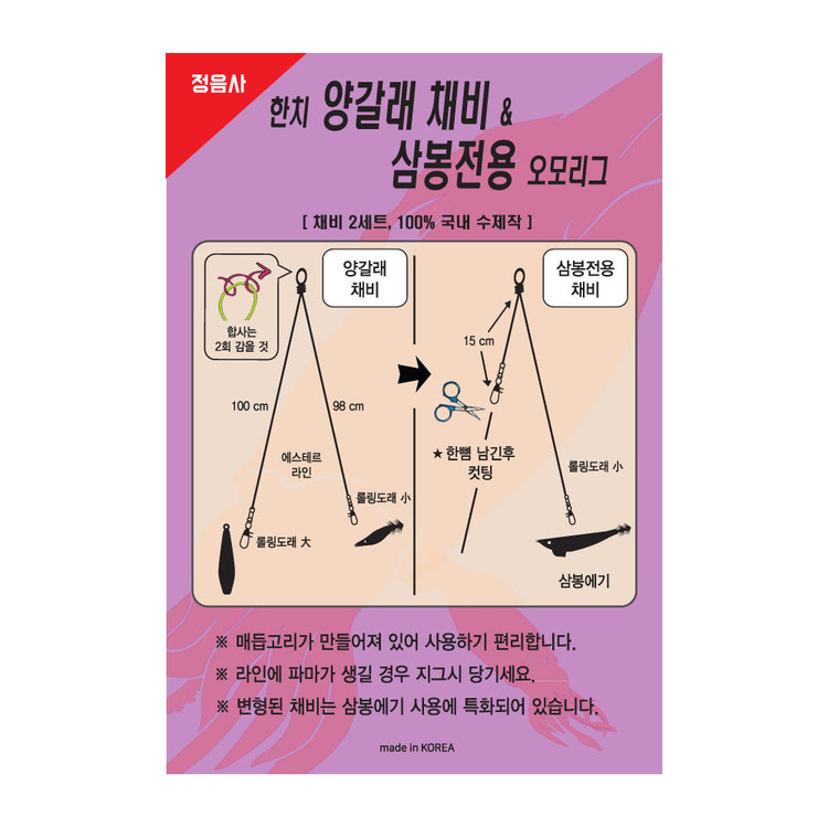 정음사 한치 양갈래채비 삼봉전용 오모리그 채비