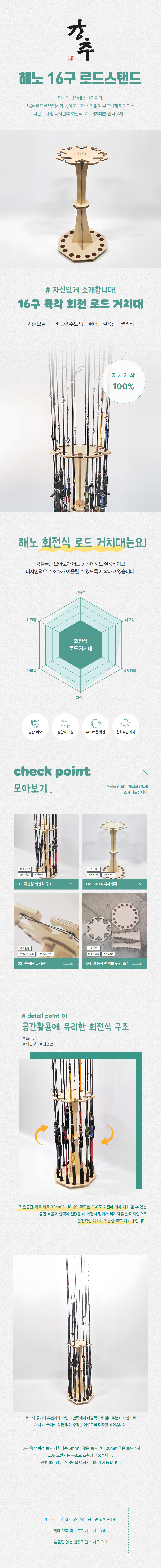 강추 해노 16구 낚시대 거치대 로드 스탠드 원목 진열 로드거치대