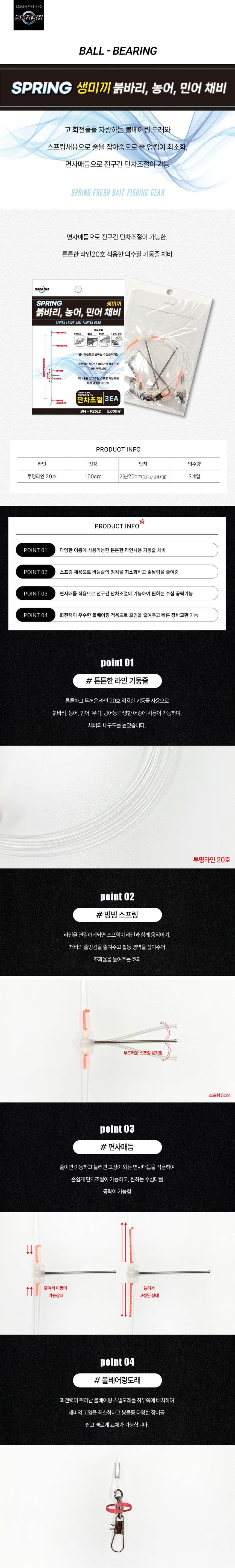 스매쉬 볼베어링 스프링 생미끼 외수질 채비 붉바리 민어 농어 채비