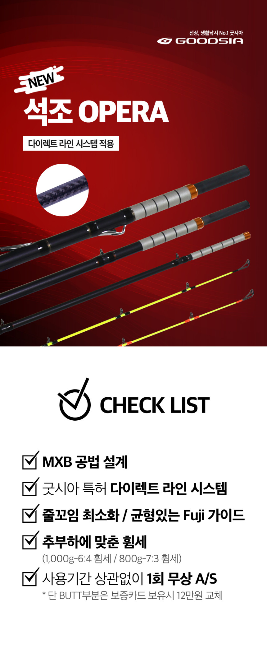 굿시아 석조 오페라 54&62 갈치 낚시대 6:4