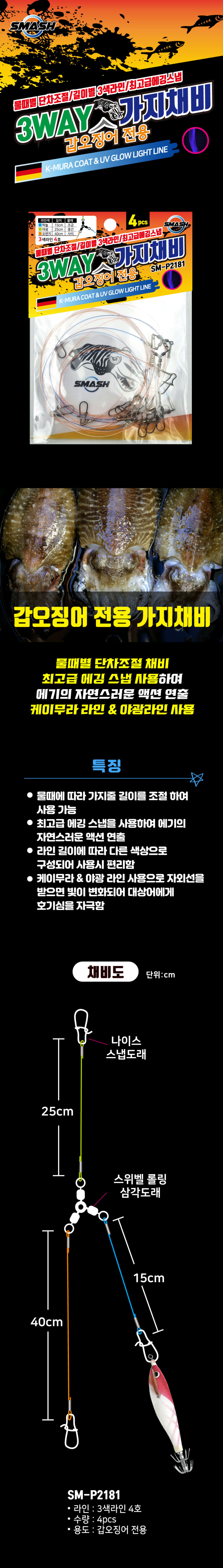 스매쉬 3WAY 갑오징어 전용 가지채비 4개입