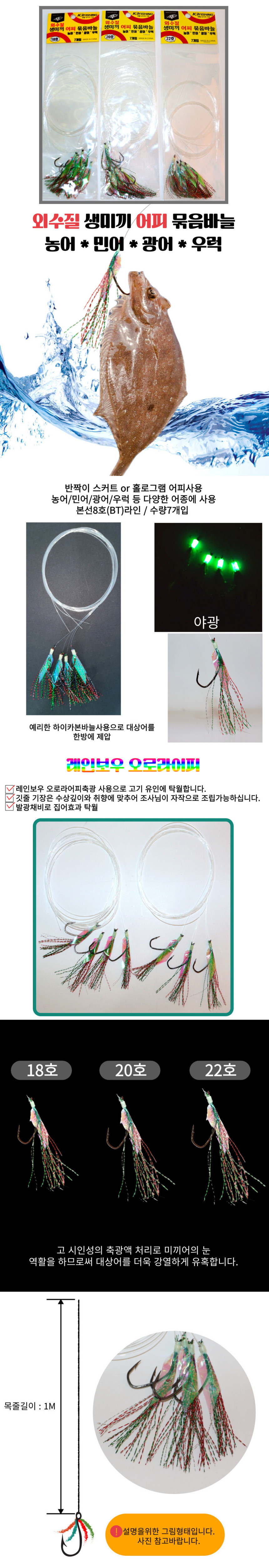 K3피싱 외수질 생미끼 어피 묶음바늘 7개입
