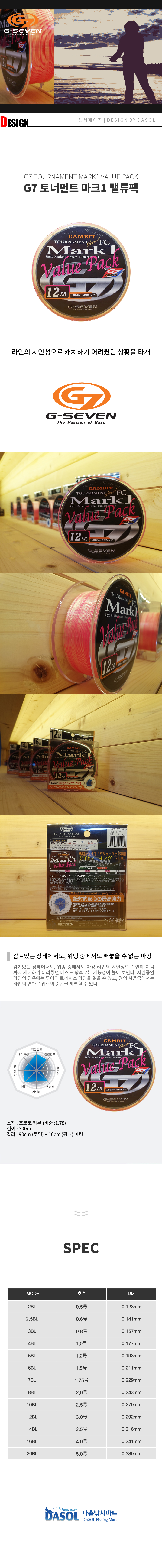 지세븐 G7 토너먼트 마크1 밸류팩 카본라인 300 m 4LB~16LB