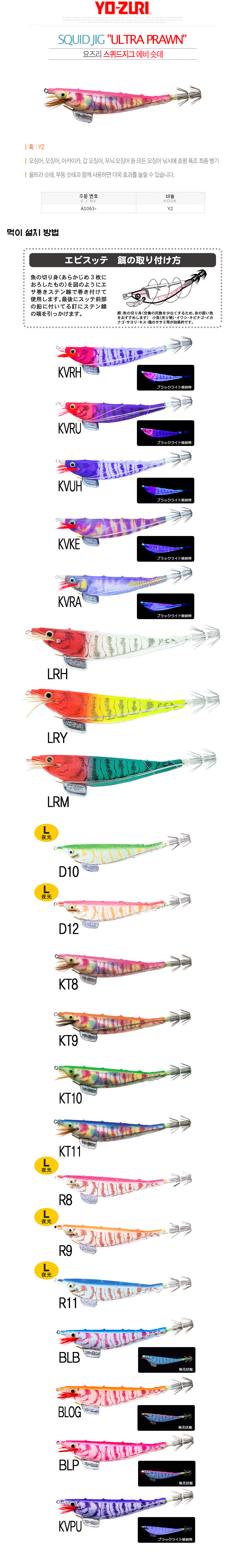 요즈리 삼봉 에기 스퀴드지그 에비슷테 / 요주리 17가지 컬러