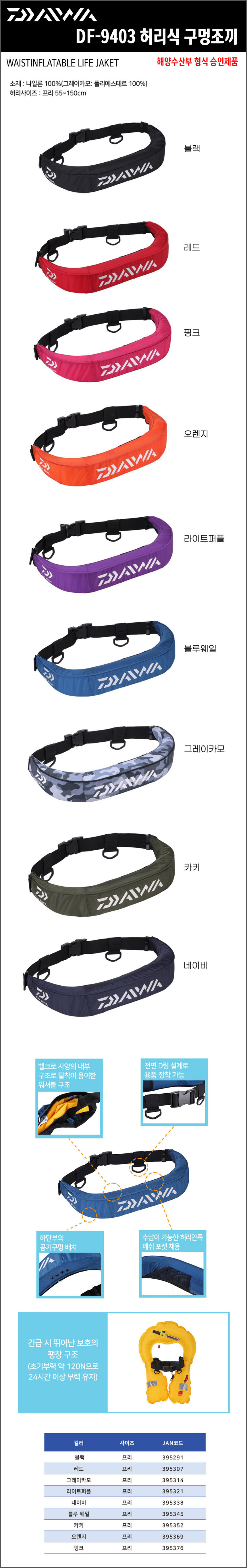 [다이와] 23년 신형 허리구명조끼 / 자동팽창식
