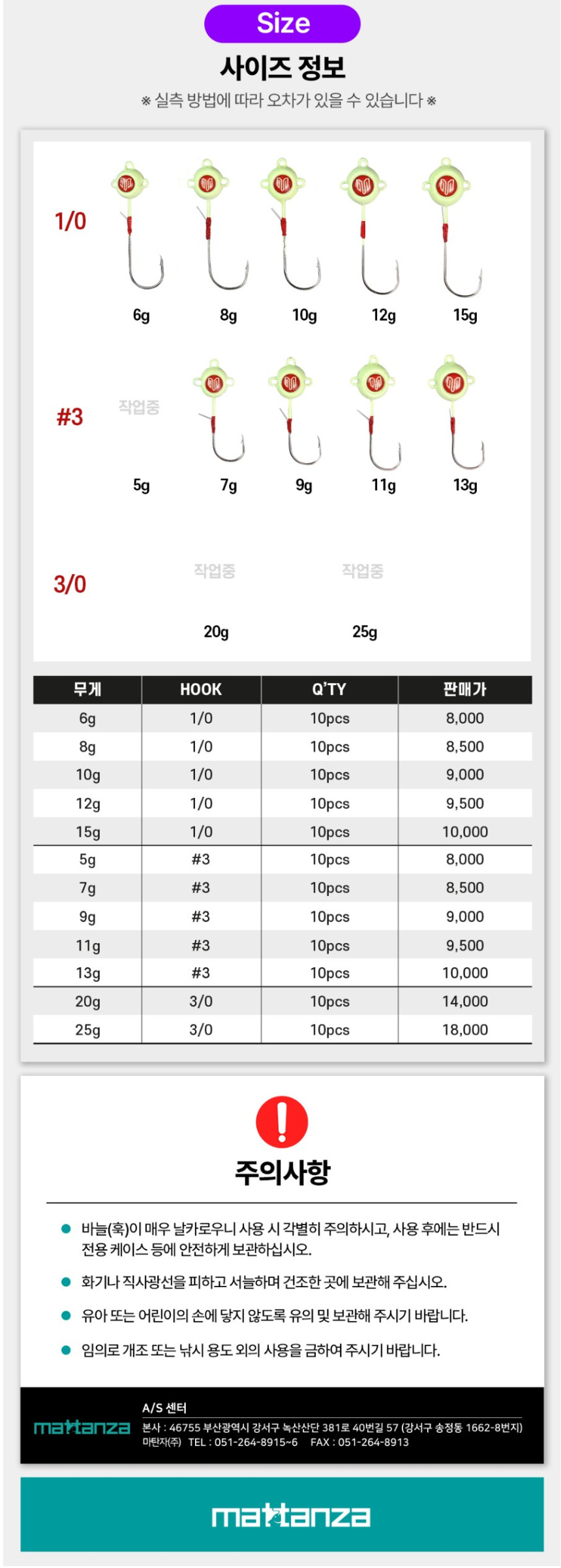 마탄자 야광 지그헤드 훅 갈치 지그 세트 10개입